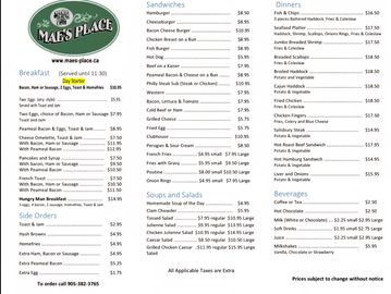 A Different Dinner Special and Lunch Sandwich Combo Each Day!